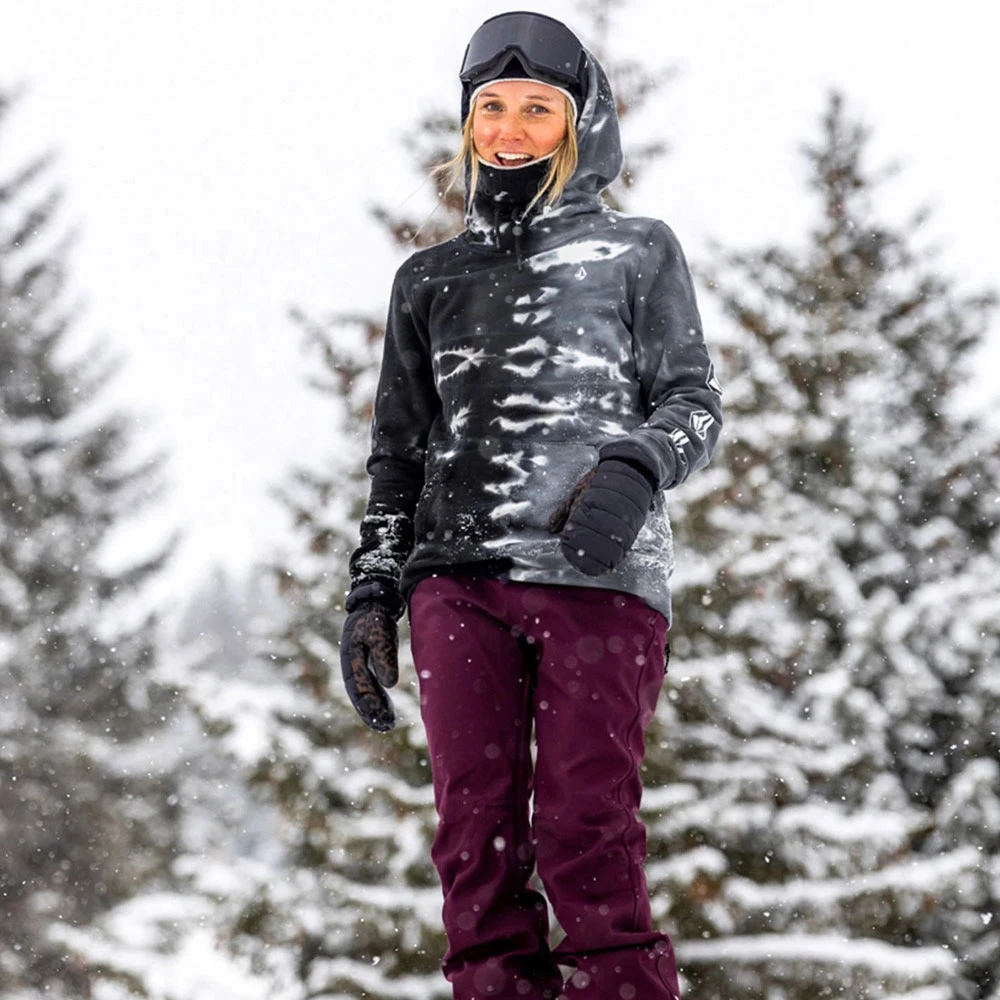 Volcom Costus Pullover Fleece für Damen in Schwarz-Weiß-Gebatikt